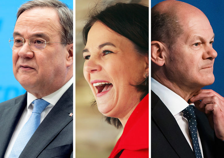 2021 Germany Election Candidates: L to R Armin Laschet, Annalena Baerbock, and Olaf Scholf